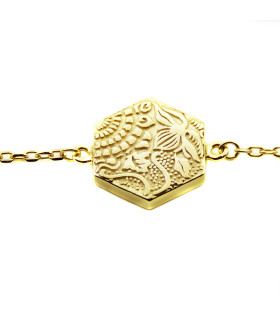 Polsera amb detall de la rajola amb disseny de la flor típica del modernisme de Barcelona.