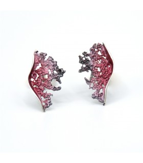 Arracades de plata i pigments amb forma rodona que representen una ona de color malva. Tancament de pressió.