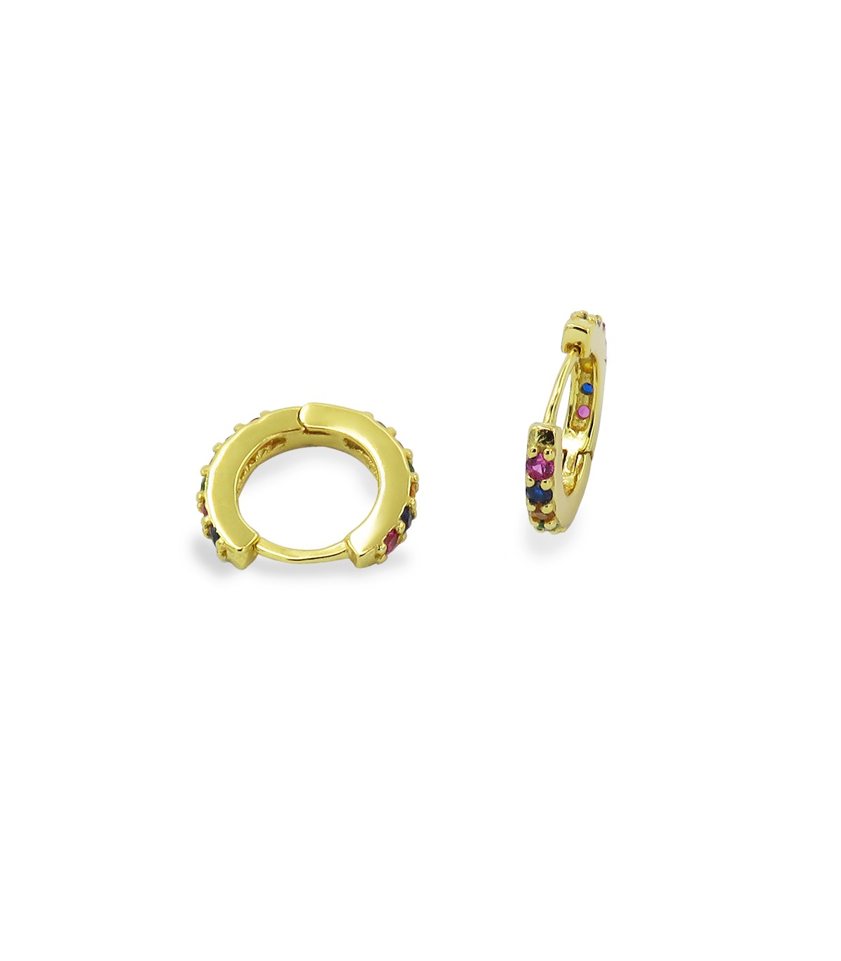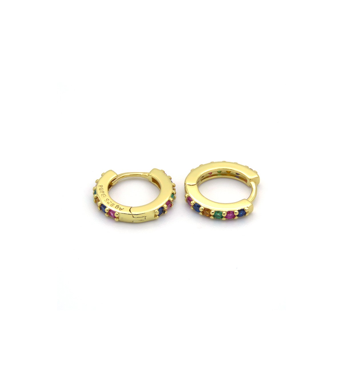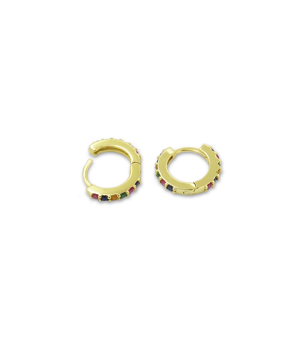 Arracades d'aro amb varies zircònies de colors. Tanca fàcil de clic.
