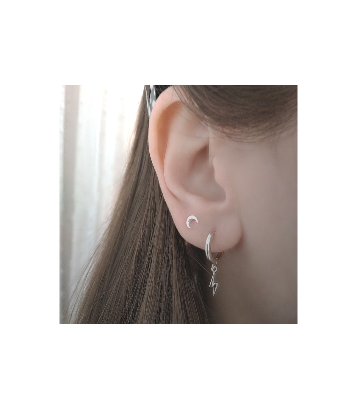 Arracada mini amb lluna invertida de plata o plata amb bany d'or, ideal per a combinar amb altres arracades.