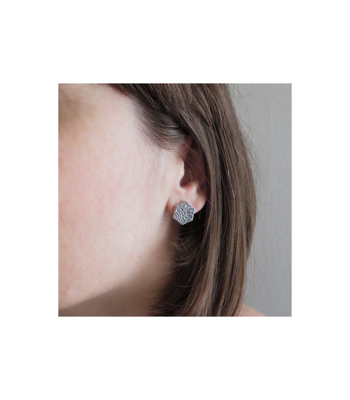 Arracades de plata de la rajola hexagonal dissenyada per Antoni Gaudí a Barcelona.