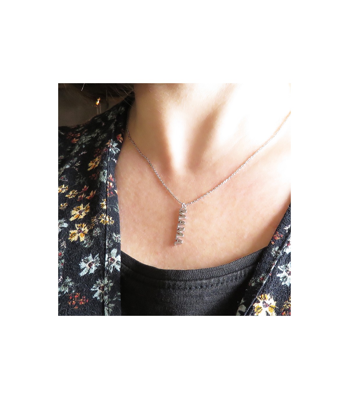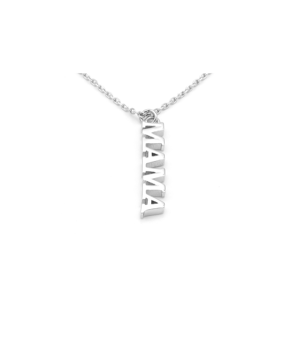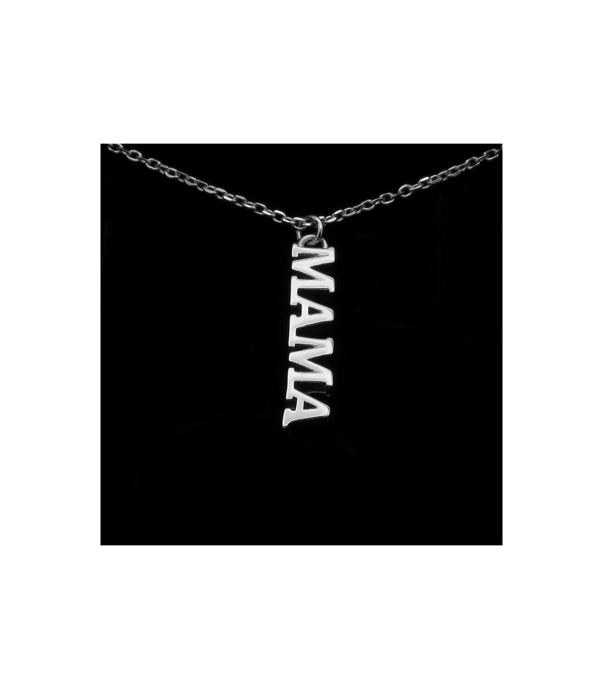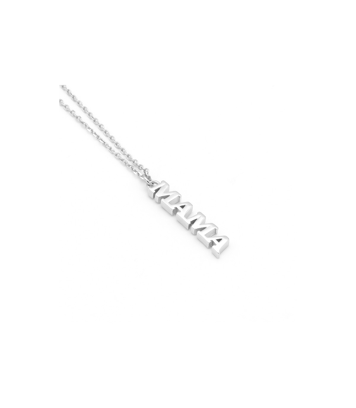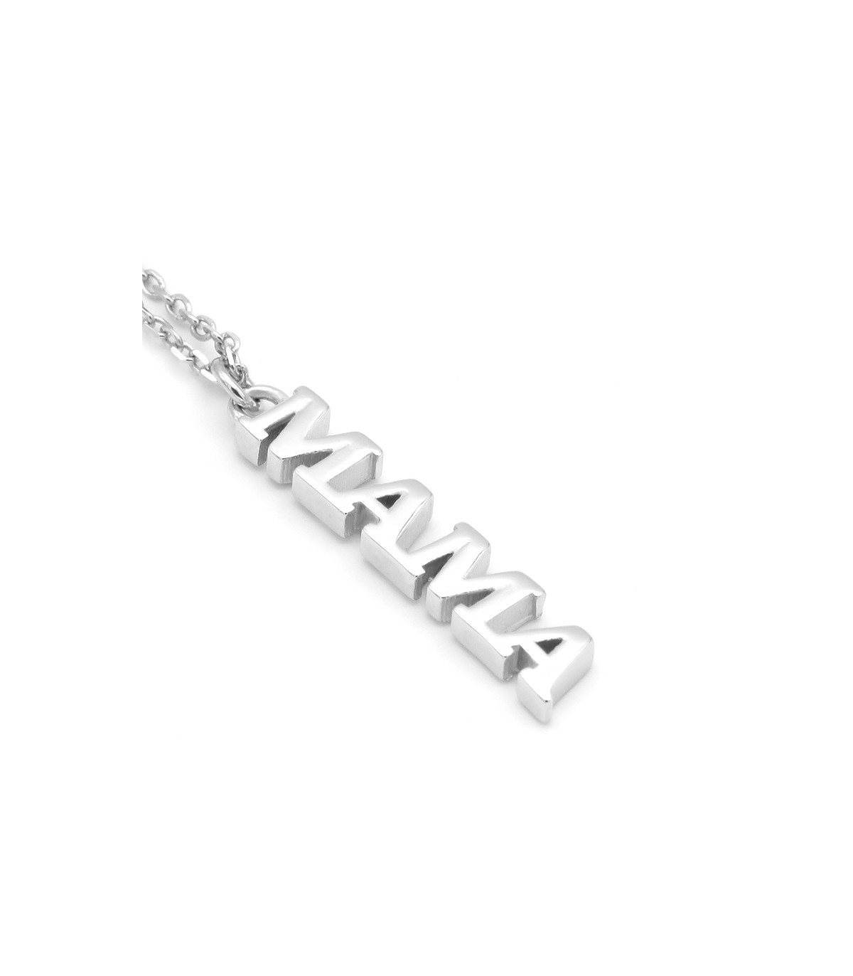 El collaret MAMA es compon per un penjoll amb la paraula "Mama” en lletres majúscules disposades verticalment el que el fa original. Un preciós regal per al dia de la mare o qualsevol, és a dir, tots els dies!.