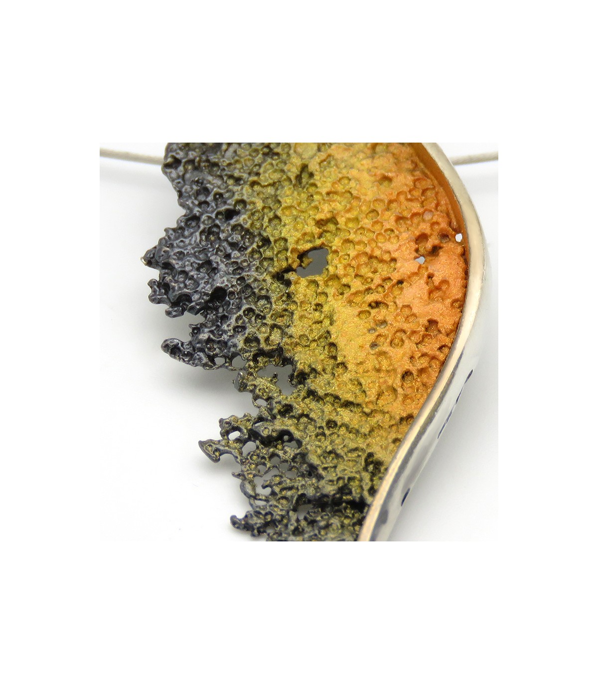 Fada és un penjoll de plata 925 creat de manera artesanal per ORFEGA, joieria d'autor de Santiago de Compostel·la, Galícia. Aquesta col·lecció està inspirada en l'ala d'una fada del bosc. Es tracta d'un penjoll que convida a imaginar, a treure la màgia del nostre interior i viatjar a mons increïbles. En aquesta ocasió oferim l'ala de Fada en color groc realitzat amb la tècnica SIMELTECH®. Es tracta d'un penjoll allargat, amb forma orgànica de 40 mm d'alt i 20 mm d'ample.