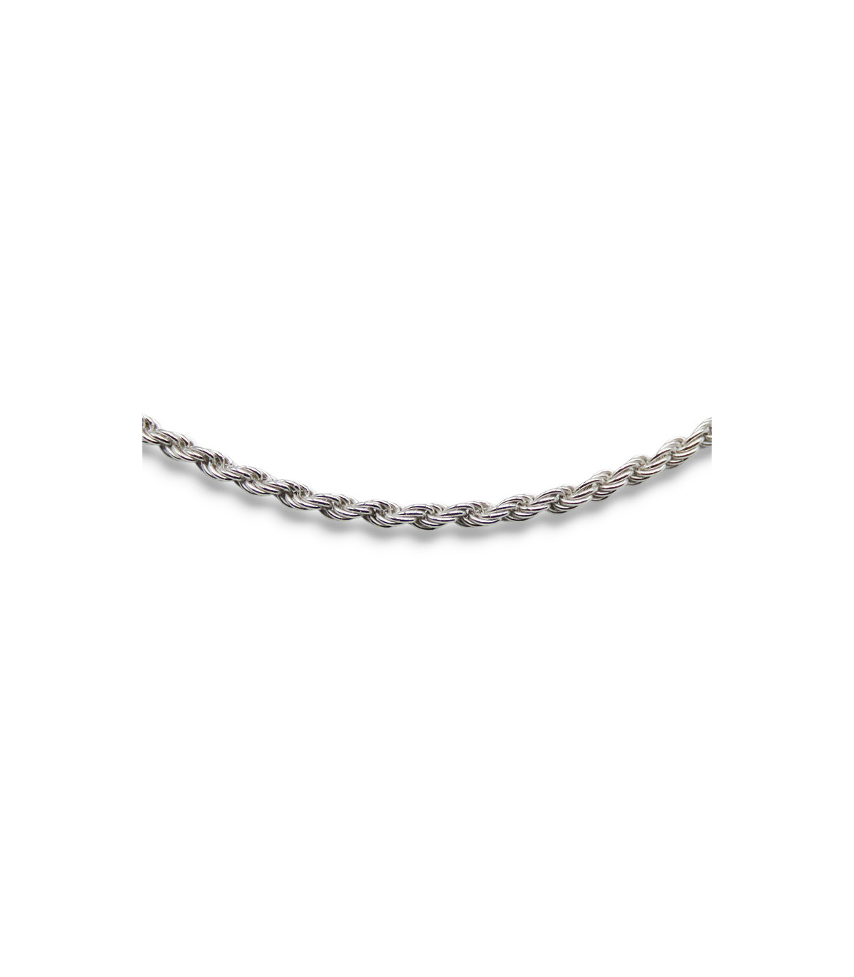 Cadena de plata trenada tipus cordó Salomònic de diferents mesures i gruixos.