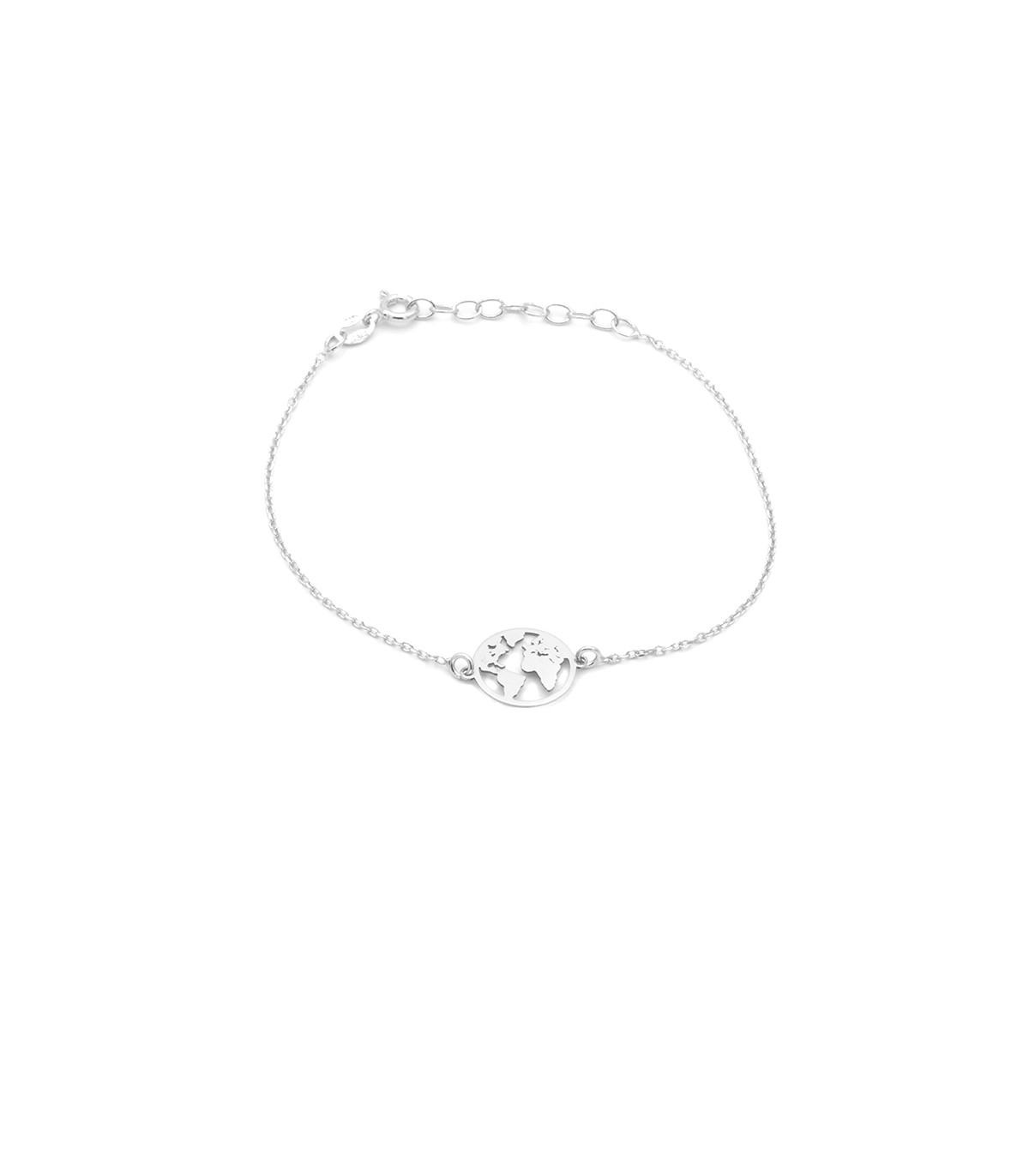 El mapamundi mesura 14 mm de diàmetre i la mesura total de la polsera és de 12 cm més 3 cm d'extensió de llarg (total 16,4 cm). Ajustable.