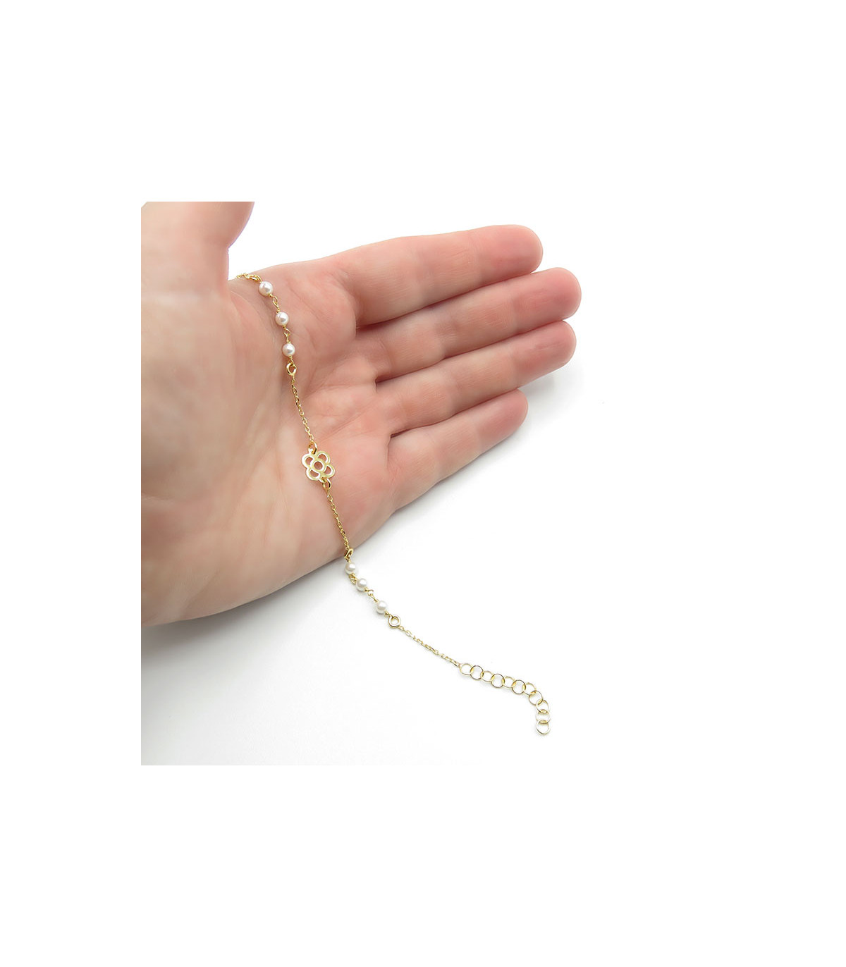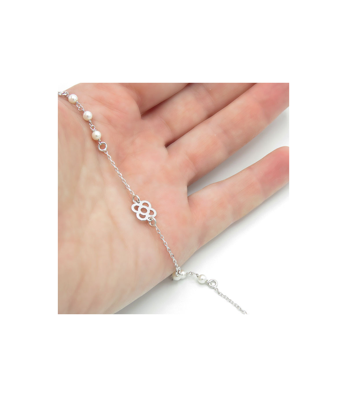 Aquesta polsera té el detall de sis perles (tres a cada banda del panot).
