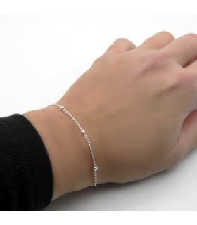 Polsera amb cordó de seda sintètica i detall d'acer amb bany d'or i zircònia. Ajustable.
