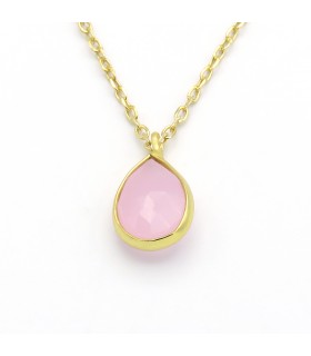 Necklace with teardrop shaped mineral pendant. Rose quartz. Chain included.