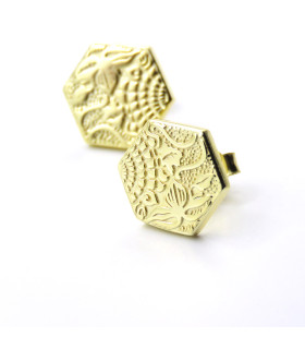 Dinosaur-shaped earrings of the spice Stegosaurus, 8mm high and 18mm long. It is a fun earring that all ages like. It has a pressure closure. The price is per pair.
