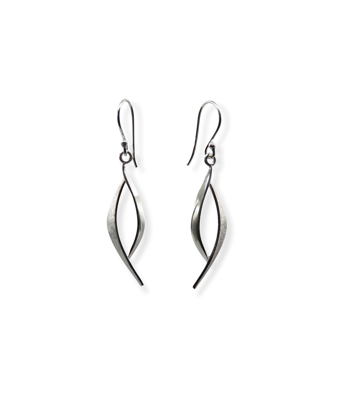 Long hook earrings featuring two strands with different finishes: matte and shiny.
