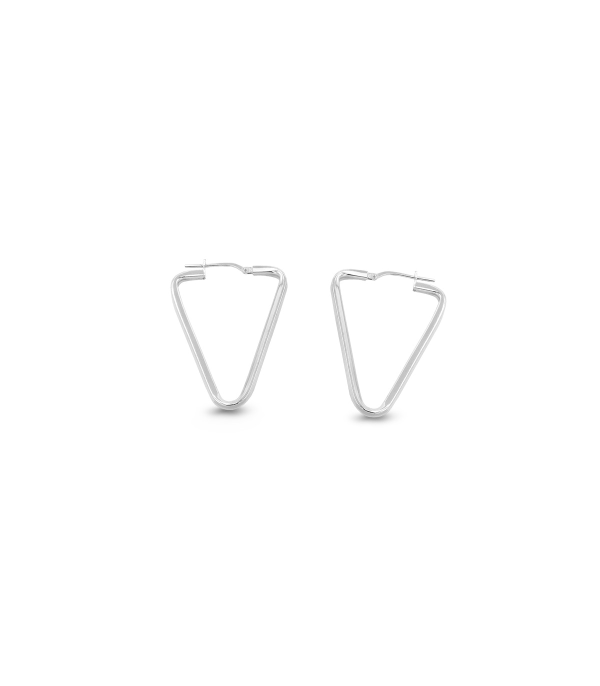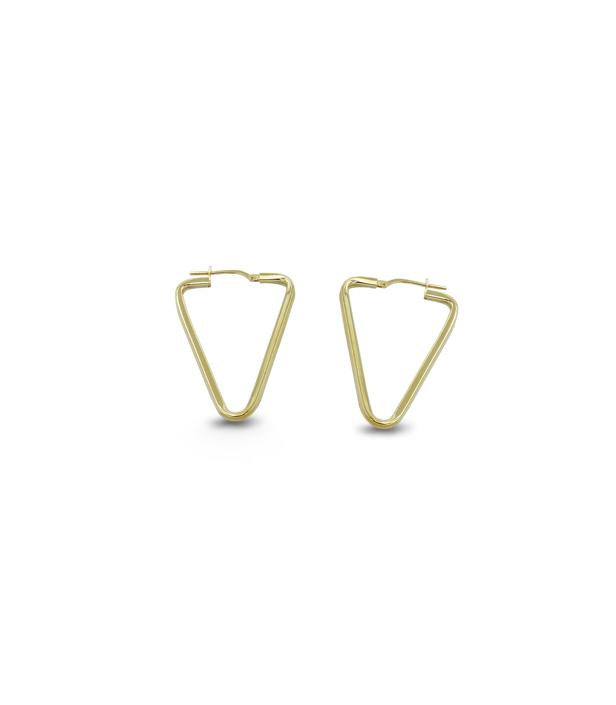 Hoop earrings with a triangular geometric design with an easy click fastening. These hoops measure 41mm high by 26mm wide.