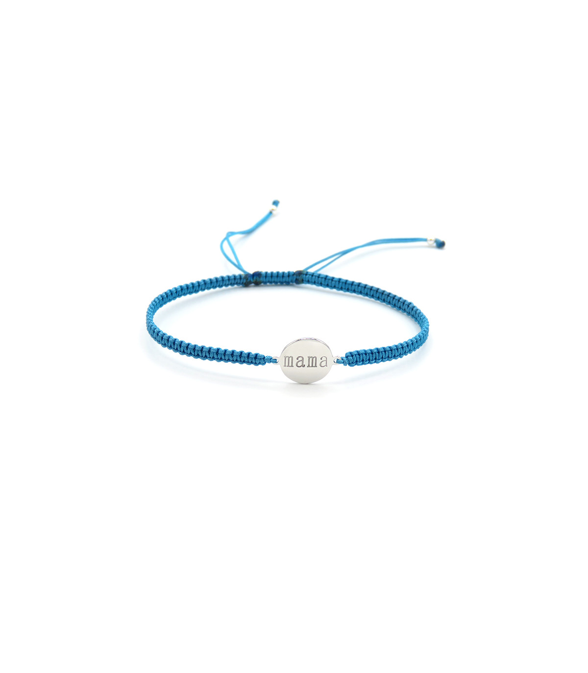 Bracelet with round plaque with Mama engraved inside. Made of adjustable macramé.