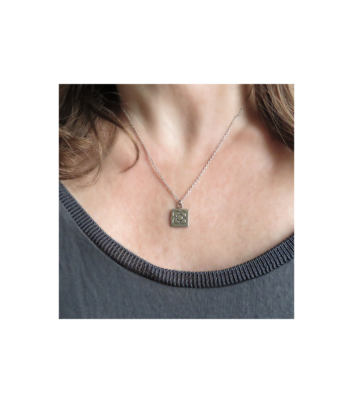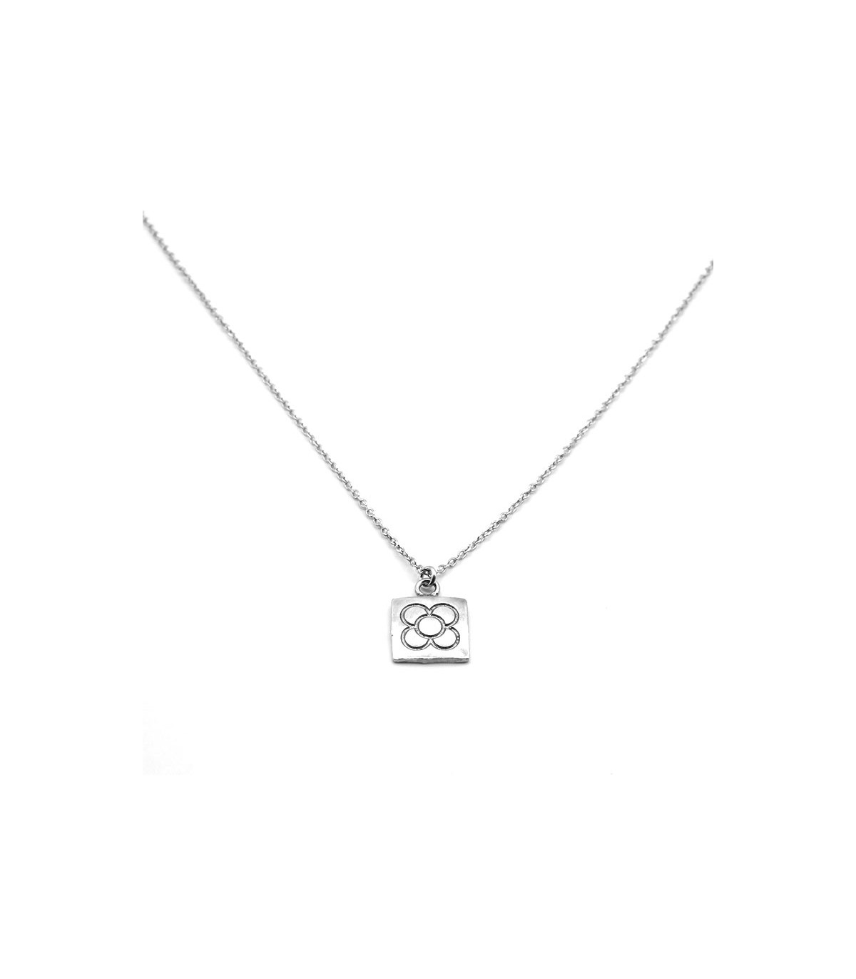 Necklace with matt oxidised silver pendant of the square tile with flower, typical of Barcelona modernism. Chain included.