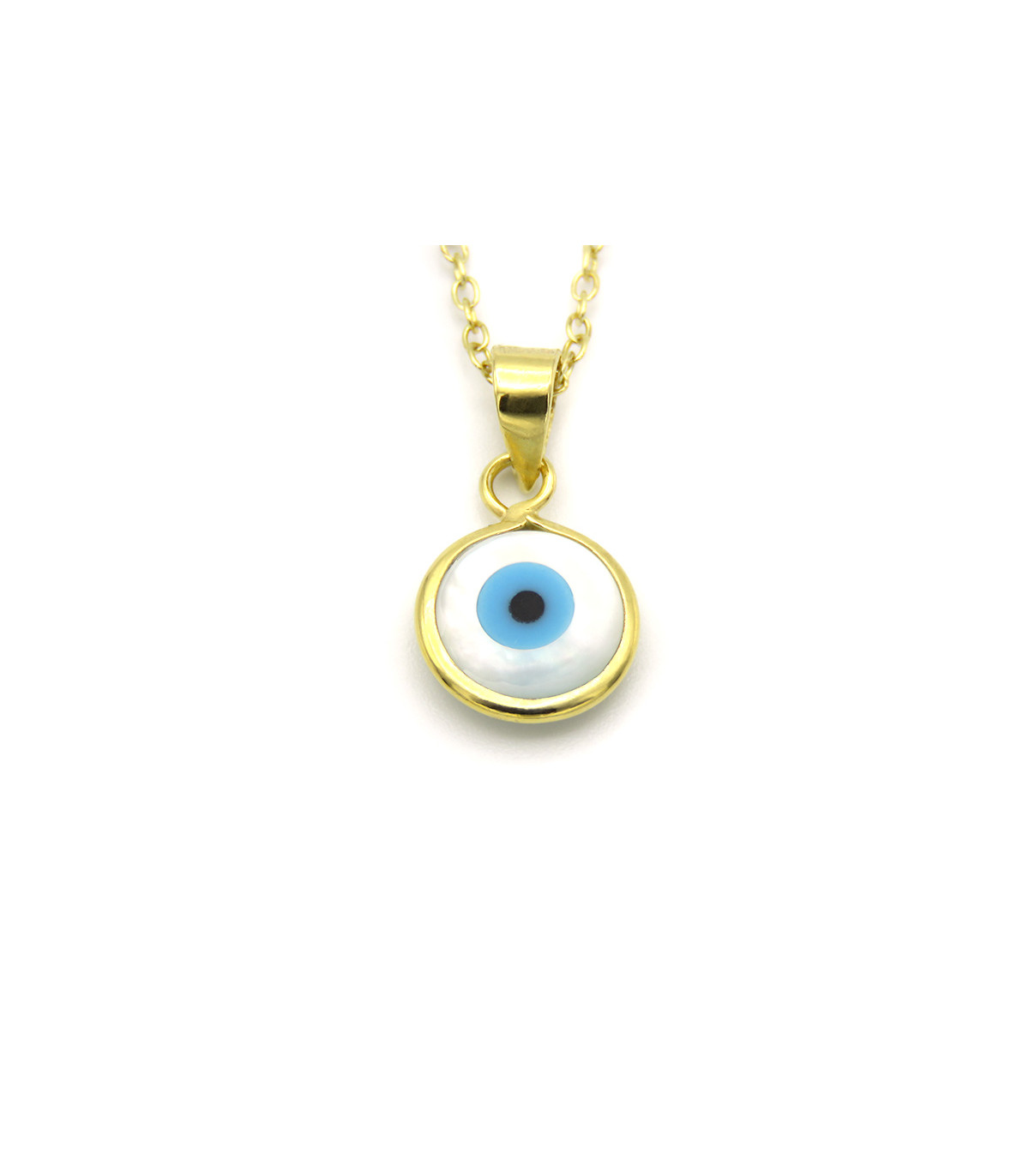 Necklace with mother-of-pearl Turkish Eye pendant. Chain included.
