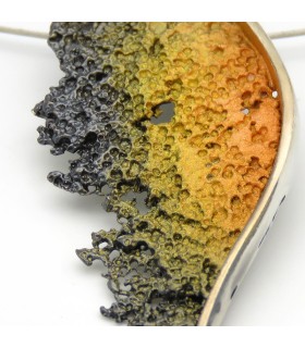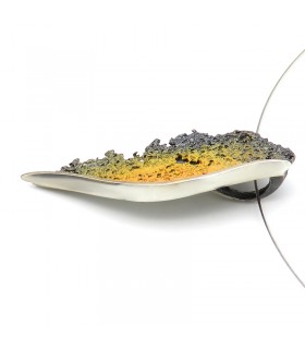 The 925 silver Copey earrings are handcrafted by ORFEGA, a jewellery designer from Santiago de Compostela, Galicia. This collection is inspired by the branches of a tree. They are earrings that evoke nature and are perfect for any age and style of person. On this occasion we offer the Copey in green with a shinier silver centre and touches of oxidised silver. It is made with the SIMELTECH® technique. It is a pair of elongated earrings with an organic shape 30 mm high and 15 mm wide. Pressure clasp.