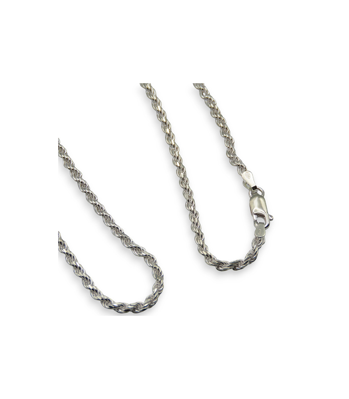 Solomon-style braided silver chain in various sizes and thicknesses.