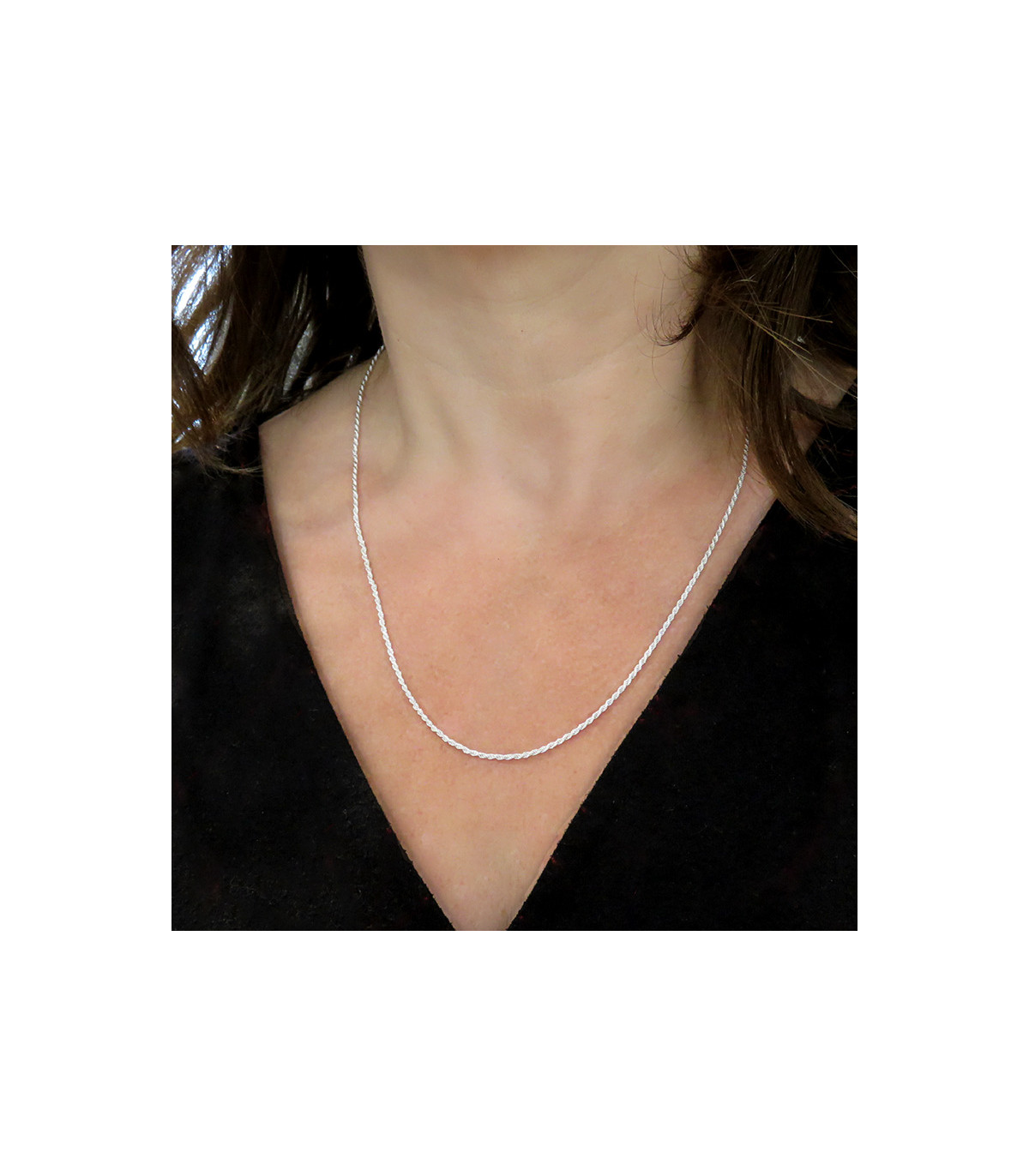 925 silver necklace made with a Solomon knot-style braided chain with a polished finish, ideal for all ages and styles and completely timeless. Available in different lengths and thicknesses. It has a thick, secure lobster clasp that matches the thickness of the chain. Can be worn alone as a necklace or with a pendant.