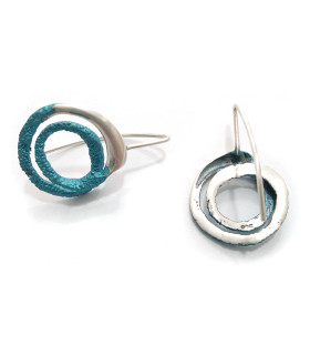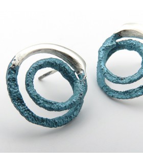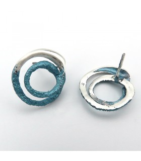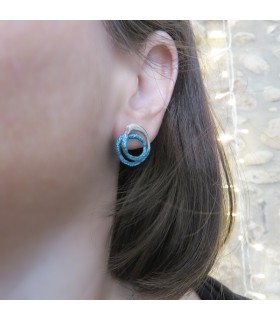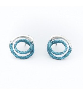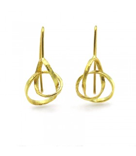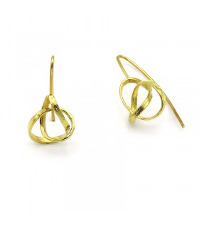 Pendientes que forman un nudo infinito de plata con acabado mate y baño de oro. Cierre de presión o gancho.