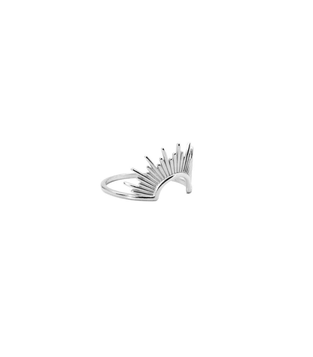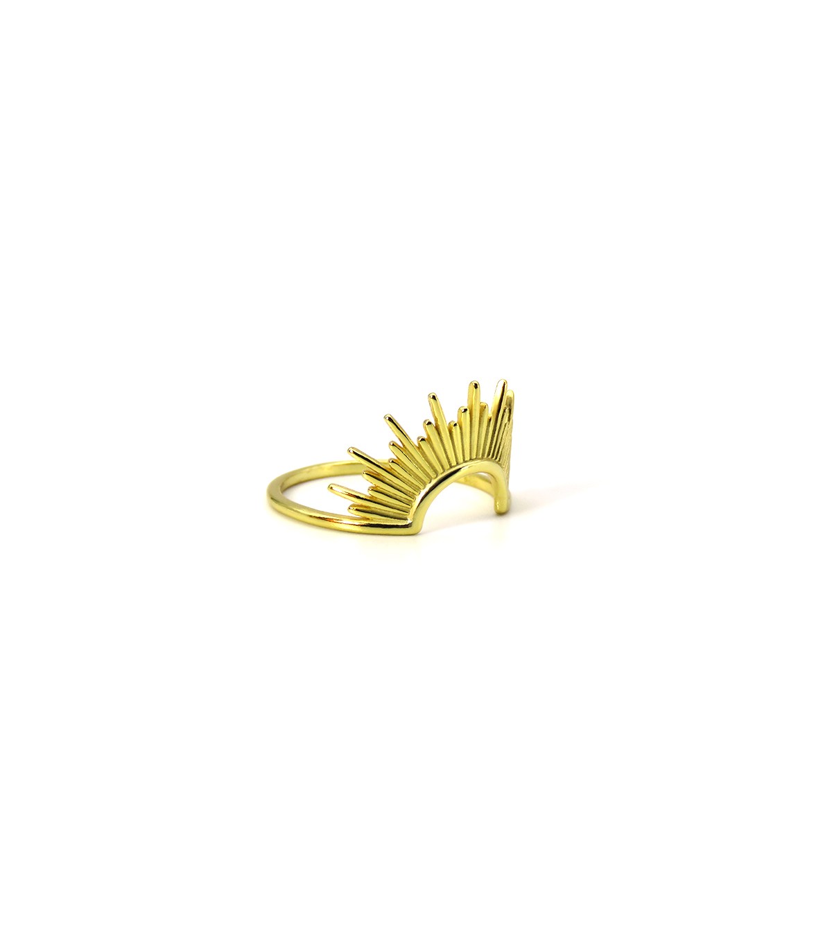 El anillo Rayos de Sol se compone por una anillo fino y espectacular al mismo tiempo que representa el sol sobre el horizonte. Medida del aro es de 1 mm de grosor. El sol mide 18mm de ancho y 12 mm de alto. Queda perfecto tanto sólo como combinado con otros anillos con minerales y midis. Ideal para todas las ocasiones.