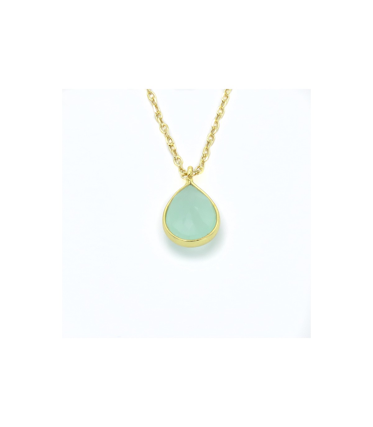 Collar con un pequeño colgante de un mineral (calcedonia) con forma de lágrima. La medida del colgante es de 12 mm de alto por 6 mm de ancho.