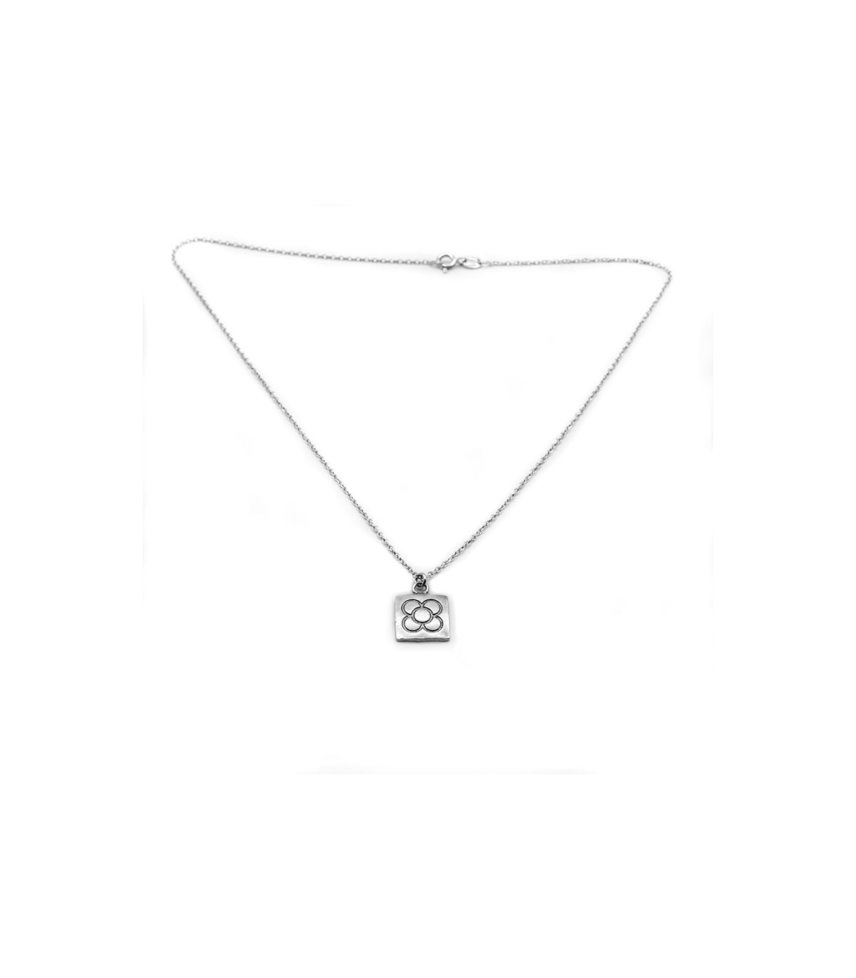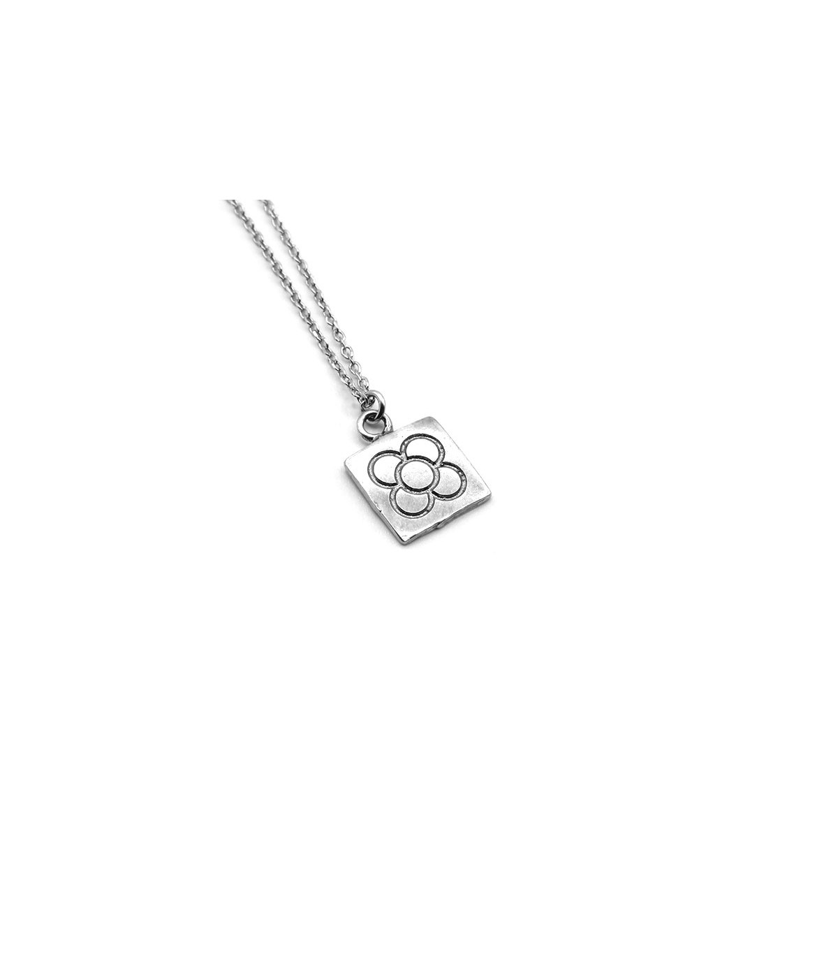 Collar con colgante de plata oxidada mate de la baldosa cuadrada con flor, típica del modernismo de Barcelona. Cadena incluida.