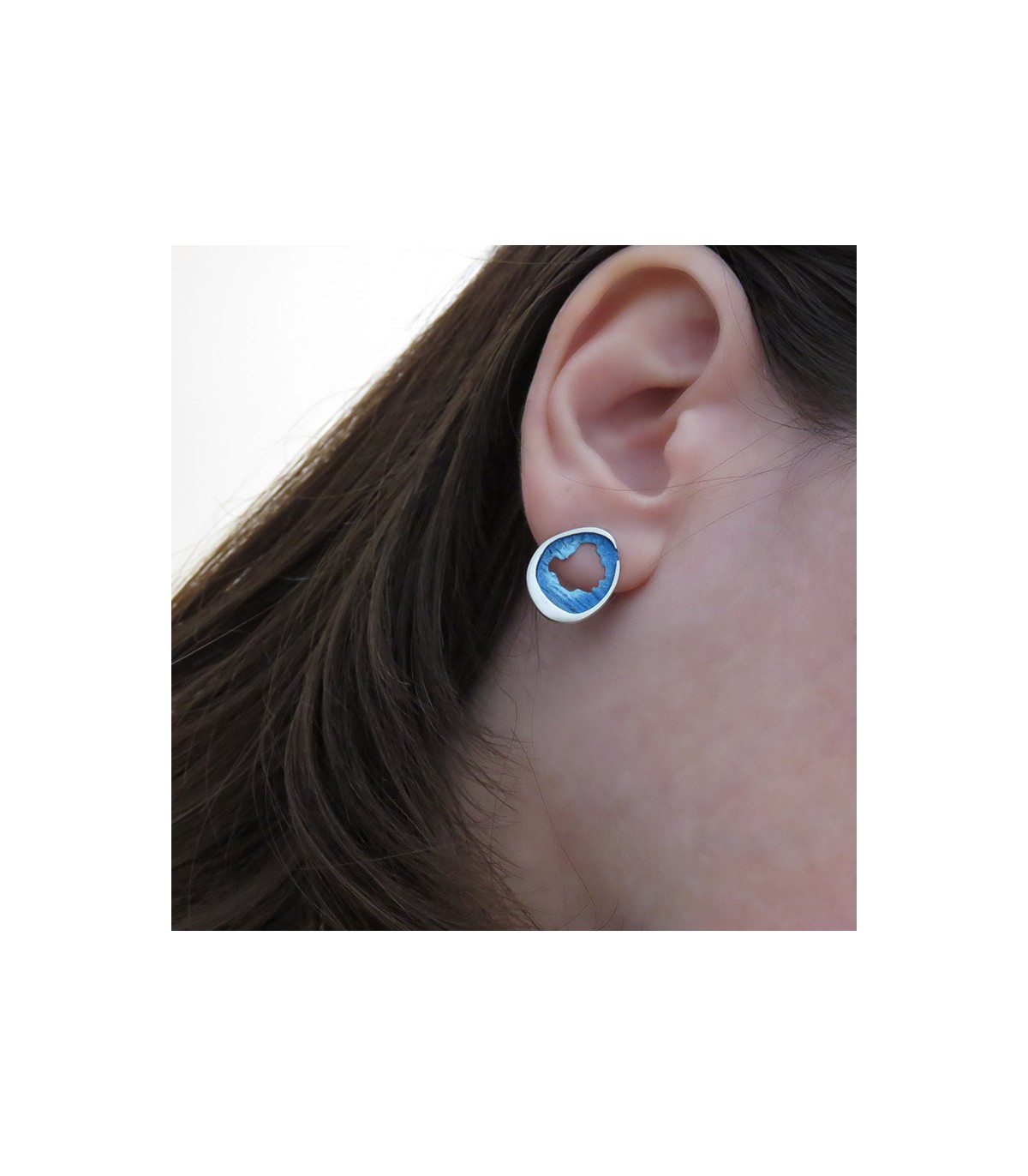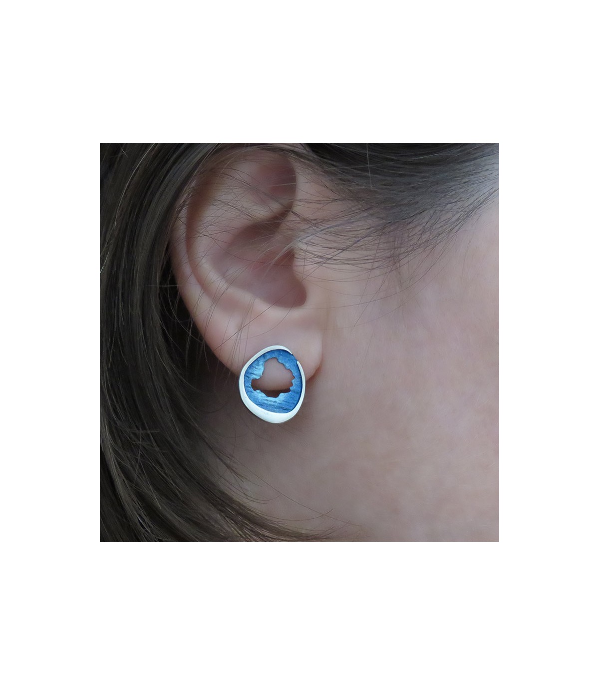 Los pendientes OCASO son de plata 925 creados de forma artesanal por ORFEGA, joyería de autor de Santiago de Compostela, Galicia. Dicha colección está inspirada en el cielo, concretamente en ese momento tan bonito en que el sol se va para dar paso a la noche. En esta ocasión ofrecemos el Ocaso en de color azul realizado con la técnica SIMELTECH®. Se trata de unos pendientes redondos de 14 mm de ancho por 16 de alto y con tonos azules en el interior y plata mate alrededor.