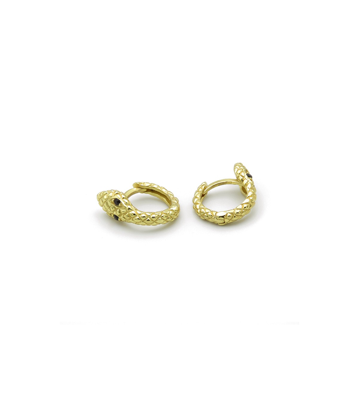 Pendientes de aro con forma de serpiente, ojos de circonitas negras y cierre fácil de clic.