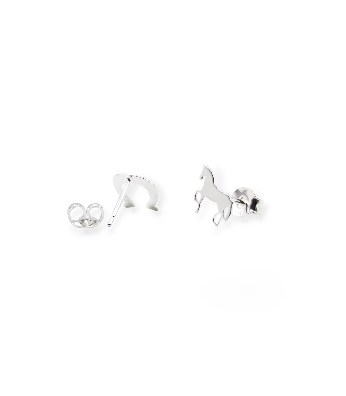 Pendientes de presión con un caballo y una herradura de plata.