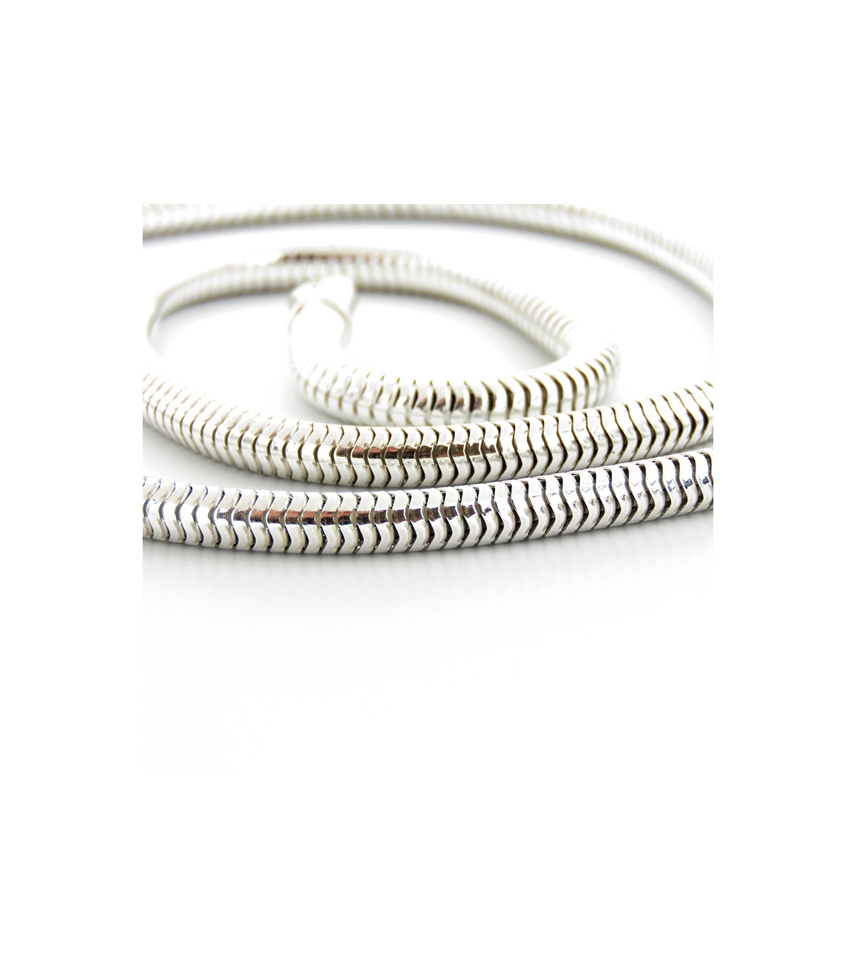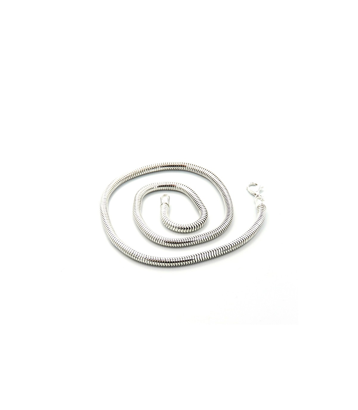 Cadena de plata tipo Snake redonda de 3mm de ancho y 45 cm, 50 o 55 cm de largo.
