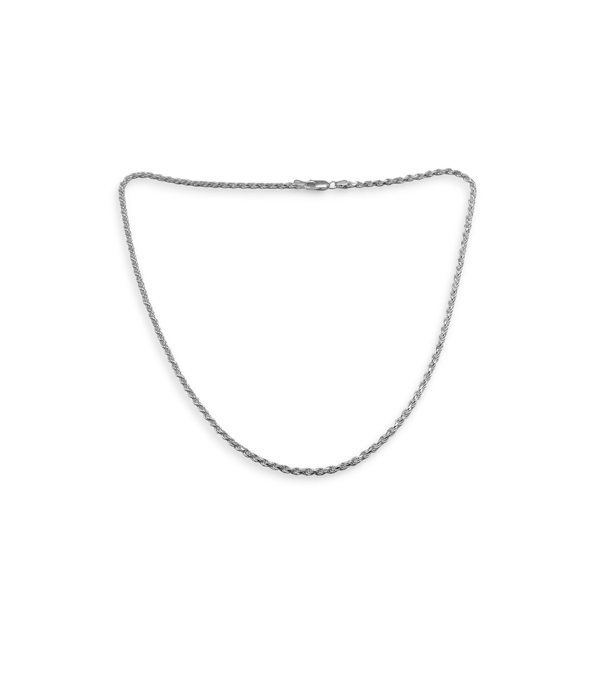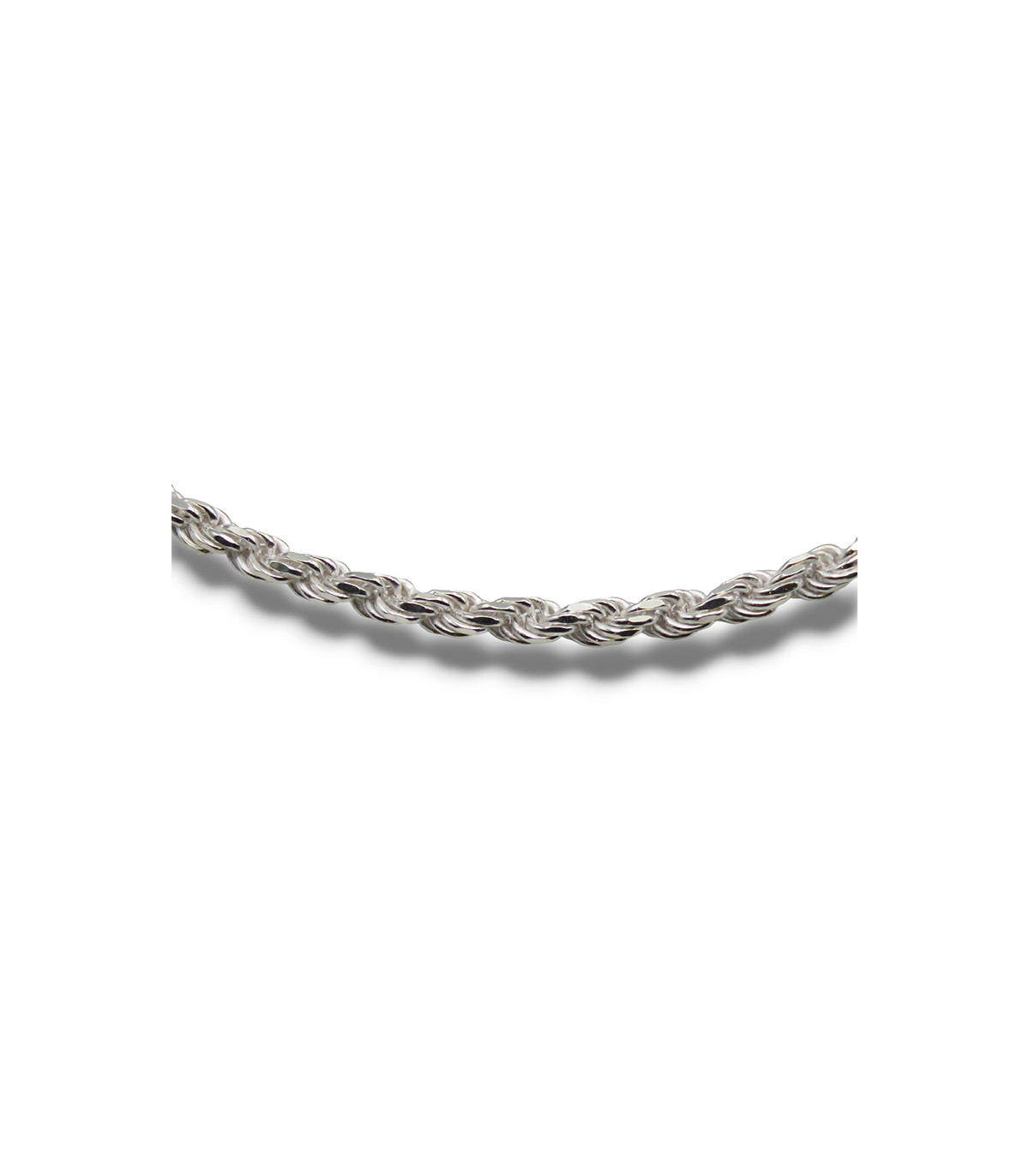 Cadena de plata trenzada tipo cordón Salomónico de diferentes medidas y grosores.