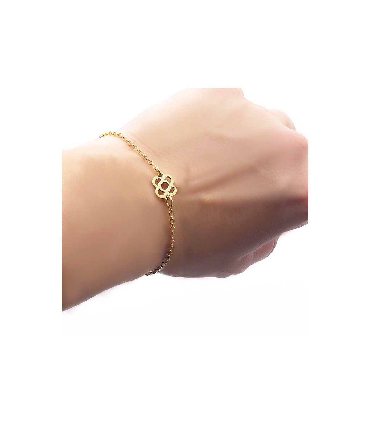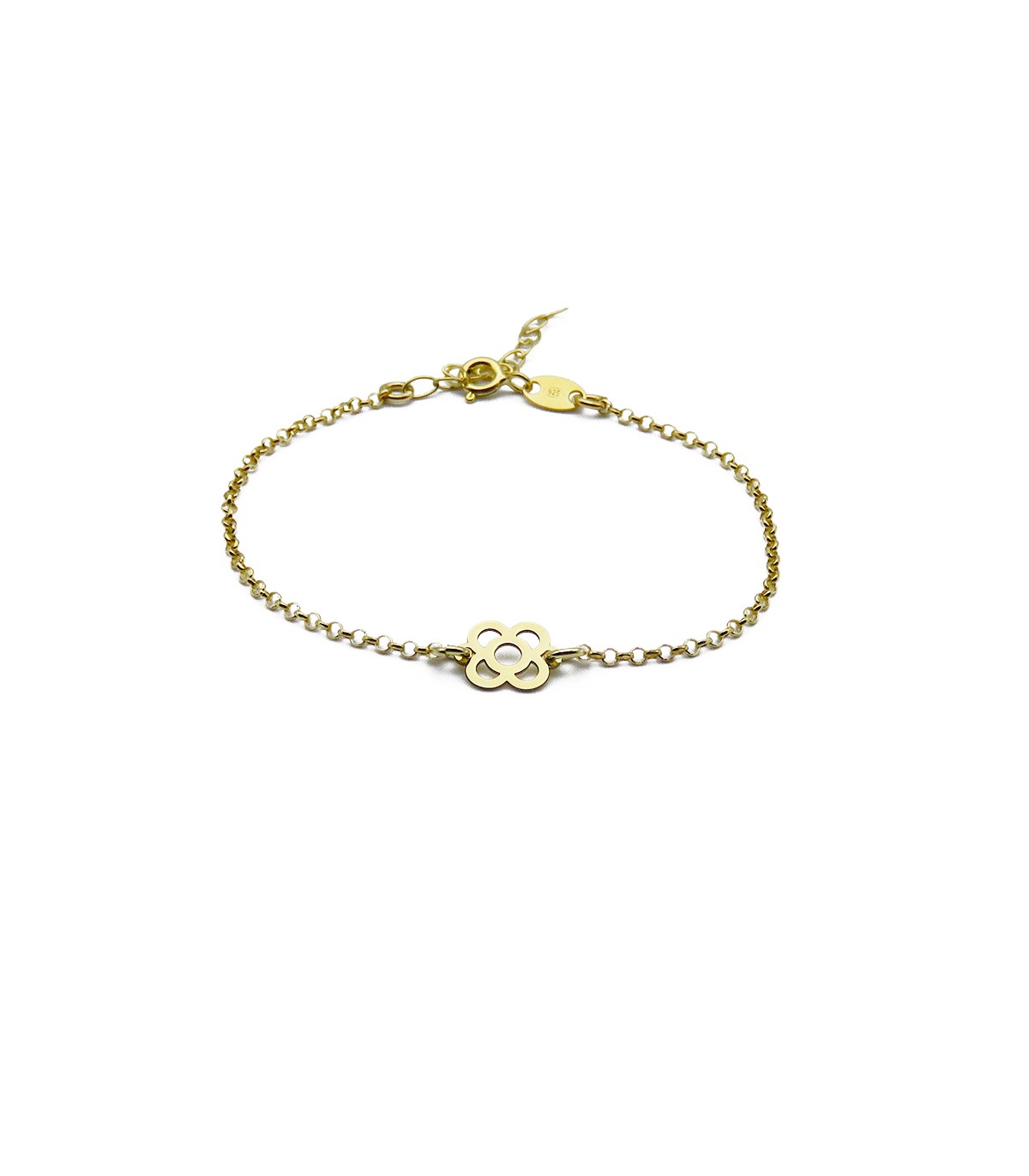 El motivo de la Flor de Barcelona mide 8 mm de diámetro y la medida total de la cadena es de 15,5 cm más 4 cm de extensión de largo (total 19,5 cm). Ajustable.